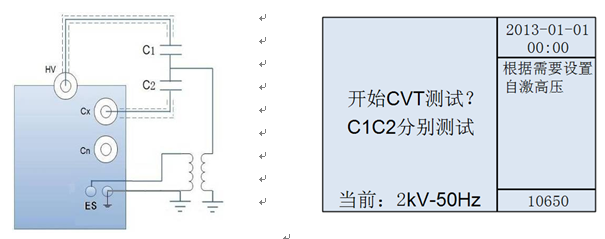 2、不拆高壓引線測(cè)試CVT電容值和介損測(cè)量模式:CVT自激法。電壓≤2kV