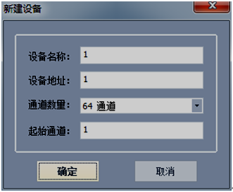 在“設備管理”區(qū)域內(nèi)點擊鼠標右鍵,選中“添加設備”彈出如下圖2-3新建設備對話框,設備名稱可自命名,設備地址為下位機地址(可在下位機系統(tǒng)設置界面中查詢),根據(jù)需要選擇相應的通道數(shù)目和起始通道(默認起始通道為1)。當通道數(shù)目大于64或者需要將通道分成不同的類,可以各類通道掛在不同的設備上。如前8個通道測量溫度,后8個通道測量濕度并且想把他們以不同的窗口顯示出來,可以按一下操作進行:1)建立一個新的8個通道的設備,設備名稱->設備地址為1 ->通道數(shù)量8通道->起始通道1;2)再建立一個8通道的設備,設備名稱->設備地址為1 ->通道數(shù)量8通道->起始通道9。以上是對于同一臺儀器不同通道的操作。