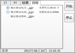智能互感器測試儀自測界面如圖1。在萬用表幫助下,自測功能可用于檢查設備是否損壞,測量電路是否正常。
