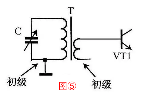 6、高頻變壓器通常是指工作于射頻范圍的變壓器。收音機的磁性天線就是一個高頻變壓器,初級線圈與可變電容器C組成選頻回路,選出的電臺信號通過初、次級之間的耦合傳輸?shù)礁叻呕蜃冾l級VT1(圖⑤)。