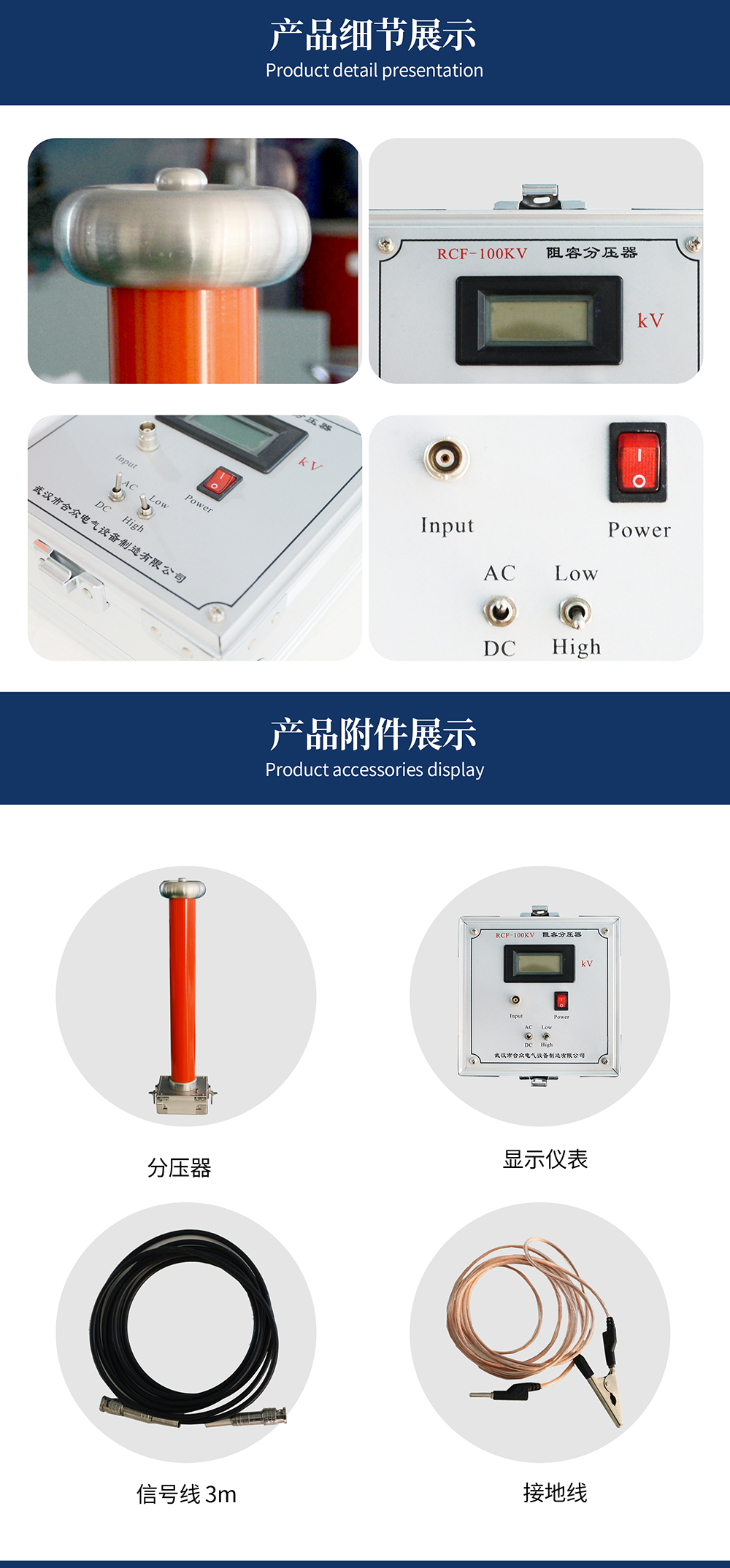 本產(chǎn)品作為高電壓測(cè)量之理想設(shè)備,主要用于電力系統(tǒng)及電氣電子設(shè)備制造部門測(cè)量工頻交流高電壓和直流高電壓。本儀器由高壓分壓器和低壓顯示表兩部分組成,兩者采用配套電纜連接使用。