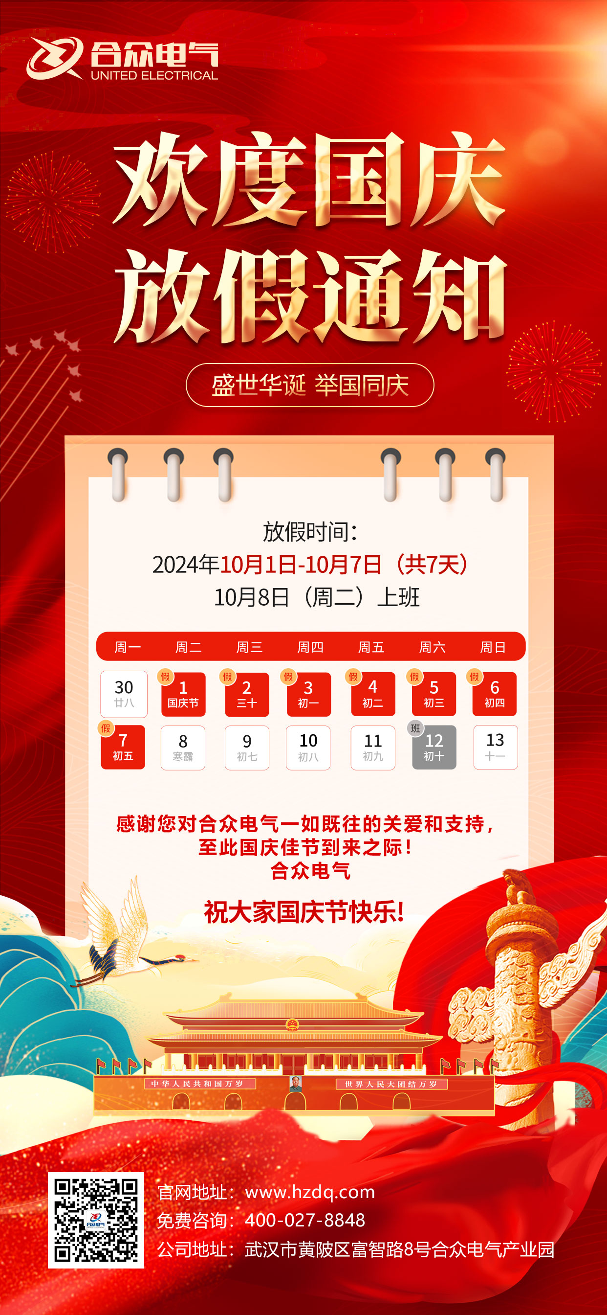 武漢市合眾電氣2024年國慶節(jié)放假通知